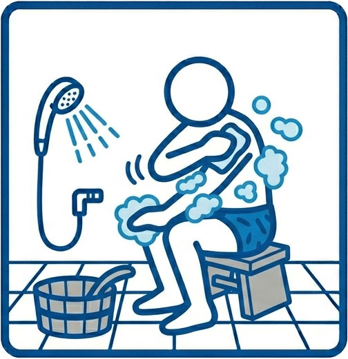 ゴシゴシするかはともかく、まずはとにかく、シャワーやかけ湯でよく体の汚れを落としてから入浴しましょう。もちろんサウナだって同じです。