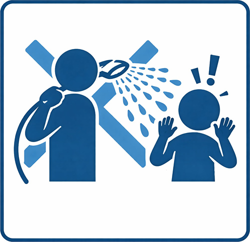 その距離からシャワーヘッドを手で持って自分の顔や体に向けたらどうなるか。自分の体の幅を超えた分は後ろにお湯が飛ぶわけで、後ろに人がいればかかります。後ろに浴槽があればシャワーのお湯が入ります。
